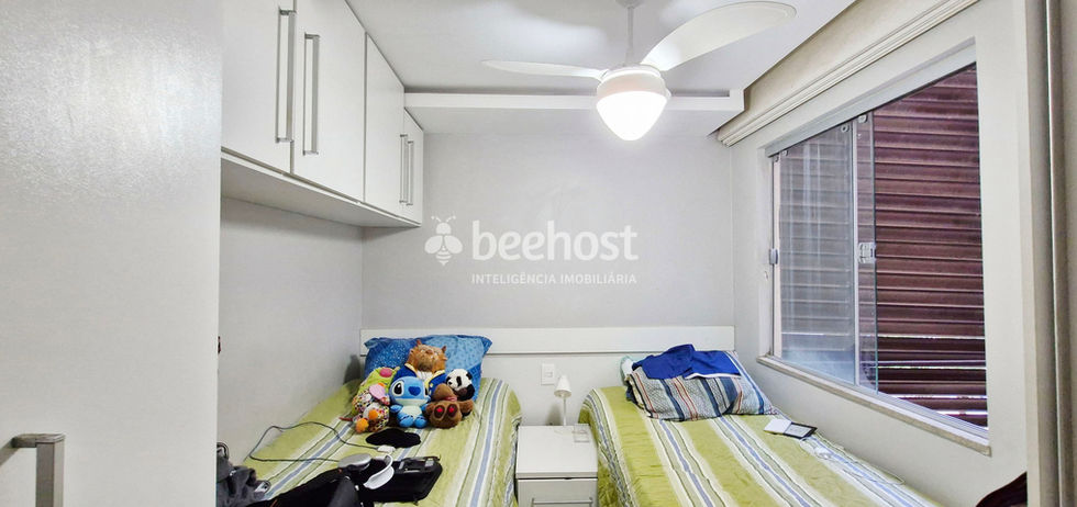 - QUARTO 1: guarda-roupa, 2 camas de solteiro, ventilador de teto, tela de proteção